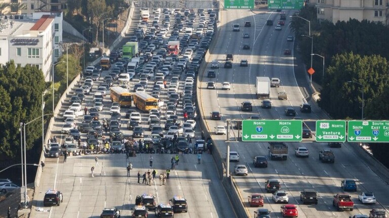 قام نشطاء من جماعة يهودية تطالب بوقف إطلاق النار في قطاع غزة بعرقلة حركة المرور على طريق سريع مزدحم في مدينة لوس أنجلوس الأمريكية خلال ساعة الذروة صباح الأربعاء.